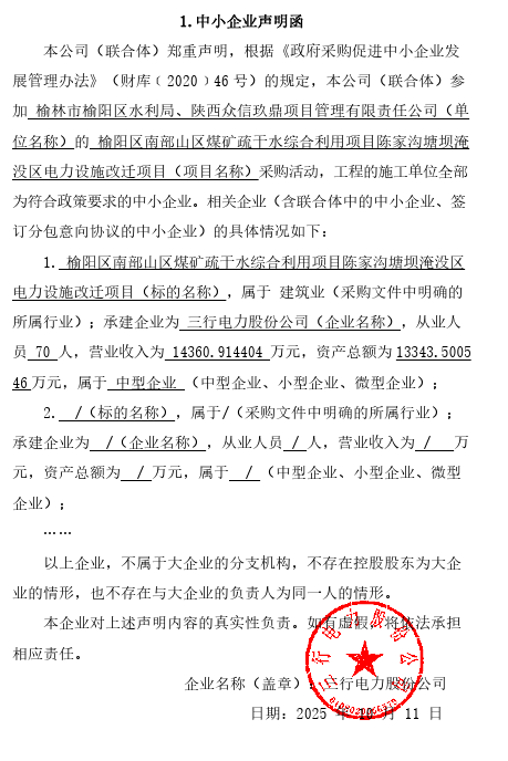 合同包1(榆阳区南部山区煤矿疏干水综合利用项目陈家沟塘坝淹没区电力设施改迁项目):