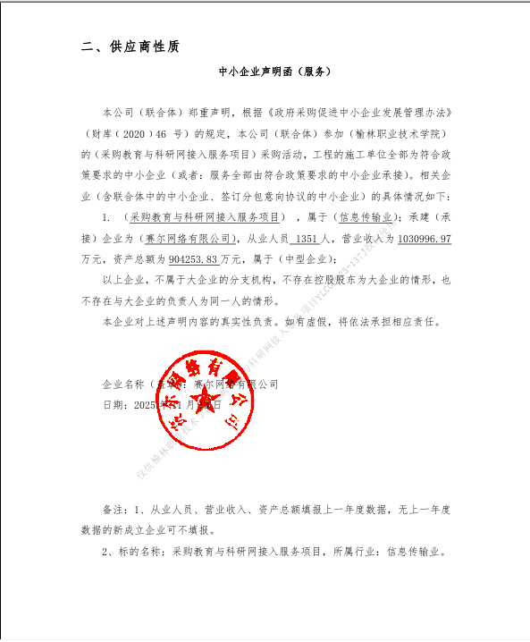 ******学院采购教育与科研网接入服务项目中标(成交)明细.pdf ******学院采购教育与科研网接入服务项目.doc 中小企业声明函.png